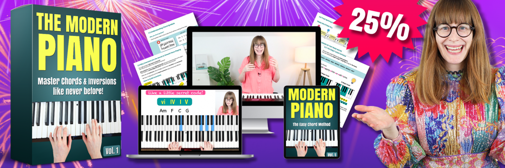 And if you’re coming back to piano after a long break or switching from classical to modern, chord-based playing, then this course is perfect for you.