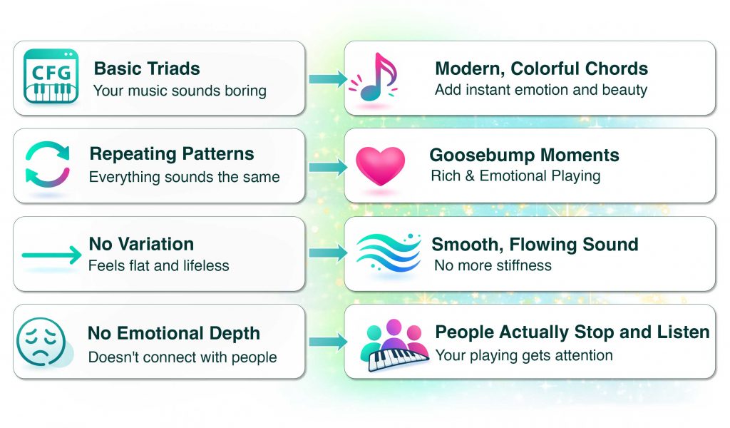 How To Turn Basic Chords Into Rich, Emotional Piano Playing Using A Simple Step-By-Step System