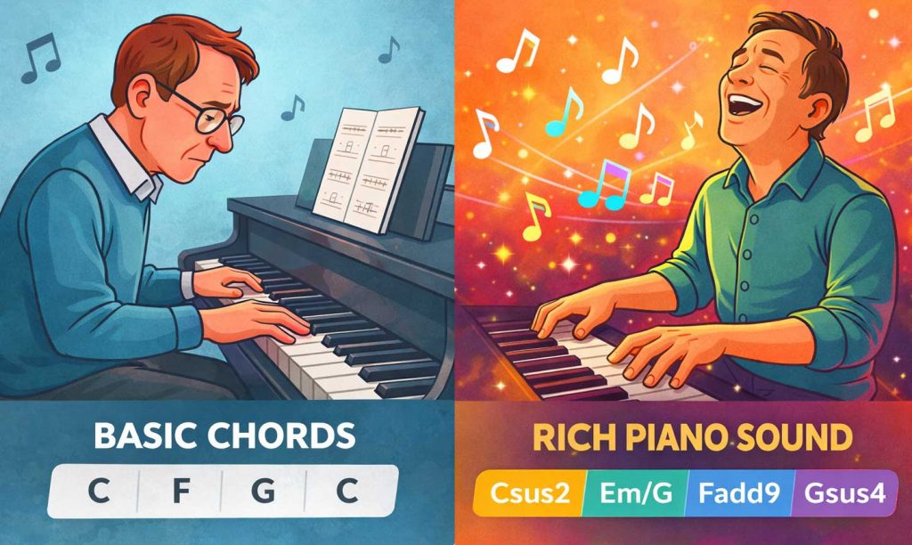 And if you’re coming back to piano after a long break or switching from classical to modern, chord-based playing, then this course is perfect for you.